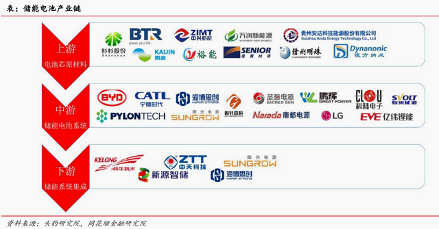 储能电池产业链核心环节是中游储能电池系统△,储能电池系统的核心环节是电池芯,后者占比近7成…。我国已构建起较完整的储能电池产业链,产业链上游主要由正极材料、负极材料、隔膜、电解液等原材料供应商组成;产业链中游主要由电池芯、电池管理系统、模组等制造厂商构成●…;下游主要包括储能变流器☆、能量管理系统☆▷、系统集成等生产制造及服务提供商组成。储能下游应用场景主要分为电源侧、电网侧和用户侧。