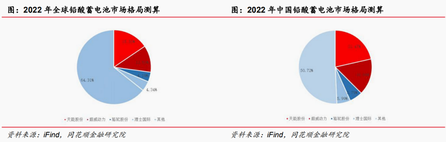 天能股份铅酸蓄电池市场份额居首,超威动力紧随其后。当前国内重点布局铅酸蓄电池的企业主要包括天能股份、超威动力☆、骆驼股份◇、理士国际、南都电源300068)等,依据前述测算的市场份额(采用2023年9月13日汇率:1美元=7.29人民币元),结合各企业2022年铅酸蓄电池业业务营收规模○=□,可测算得▽:2022年天能股份、超威动力、骆驼股份、理士国际在全球铅酸蓄电池市场的份额分别为15.55%、11.61%、4.19%和4◆.34%;2022年天能股份、超威动力、骆驼股份•、理士国际在中国铅酸蓄电池市场的份额分别为21▲●.47%☆-、16.04%▪…▽、5.79%和5.99%。