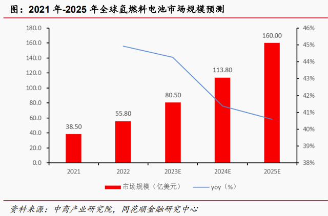 预测2023年全球氢燃料电池市场规模约80.50亿美元。根据中商产业研究院的统计■:2023年-2025年全球氢燃料市场规模达80.50亿美元◁、113.80亿美元、160.00亿美元○,相应地同比增速分别为44.27%、41…=●.37%和40.60%◇●。