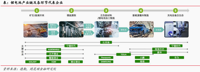 锂电池加工制造处于产业链中游,宁德时代300750)、LG化学、三星等企业拥有主导地位。锂电池产业链较长,上游包括矿石开采、锂盐提取等环节,中游包括正负极等核心材料加工、锂电池加工制造等,下游包括整车制造以及电池回收等环节。中国在锂电池产业链具备一定的先发优势,竞争激烈★=。