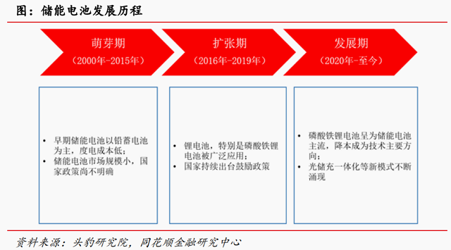磷酸铁锂电池当前是储能电池主流选择。早期铅蓄电池基于度电成本低等优势,作为储能电池主要选择方案;2020年后磷酸铁锂电池逐步成为储能电池主流,降本是其核心技术关切点。