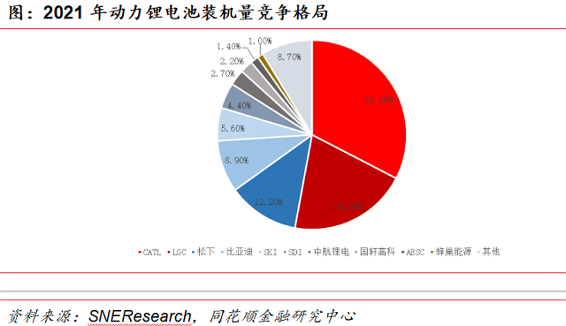 动力锂电池基本形成中日韩三强鼎立格局◇•。2021年全球动力锂电池装机量前5的企业分别为宁德时代、LGC、松下、比亚迪002594)、SKI,其市场份额分别为32▪.60%、20◁▷.30%、12.20%•△▷、8.90%和5.60%★●▪。