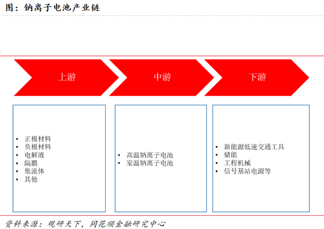钠离子电池产业链同锂电池重合度较高▲=□。钠离子电池产业链上游主要包括正极材料、负极材料=◇▽、电解液○◆、隔膜▪▲、集流体等;产业链中游主要由电池制造厂商构成;产业链下游主要覆盖交通、储能▽◇、工程机械等场景。