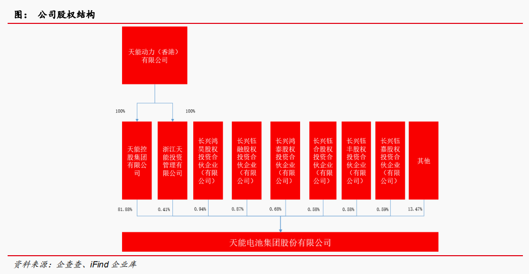 公司股权结构稳固。公司系天能动力控股子公司◁,天能动力通过天能控股和天能投资持有公司82.29%股权,公司股权结构稳定。