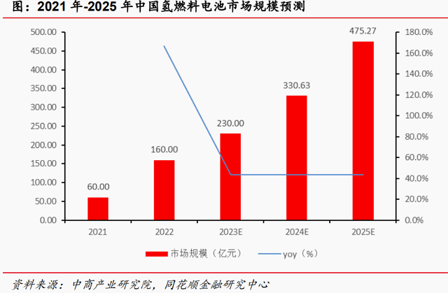 预测2023年中国氢燃料电池市场规模约230.00亿元。根据中商产业研究院的统计•▲▽:2023年预计中国氢燃料市场规模达230.00亿元,同比增速43.75%▲▼○,考虑到中国氢燃料电池行业正处于加速导入阶段,故假设2024年●、2025年将保持同2023年接近的增速,据此推算2024年、2025年中国中国氢燃料市场规模分别为330.63亿元、475•▪★.27亿元。
